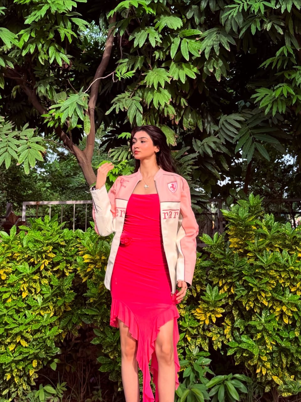 Ferrari racing fully embroidered jacket in pink for girls | Xoratic.